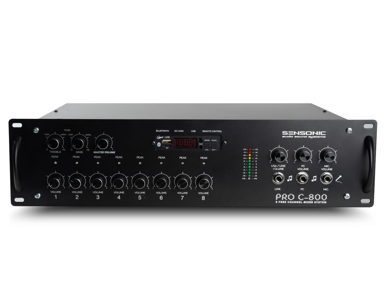 Sensonic Pro Mixer C600P, çok bölgeli anons ve müzik yayını gereken fabrika, üretim alanı ve büyük tesislerde kullanılan güçlü bir bölge kontrol amfisidir. 6 ayrı bölgeye bağımsız ses kontrolü sağlar, böylece farklı alanlarda anons ve yayın seviyeleri ayrı ayrı yönetilebilir. Yüksek çıkış gücü sayesinde geniş alanlarda stabil ve kesintisiz ses performansı sunar.